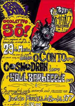O Coletivo sÓ promove nesse sábado, dia 29/05 mais uma festa. COntando com as já conhecidas bandas do público do Alquimia Cosmo Drah - com seu Hard Ropck setentista - e Soul Barbeccue - com suas pirações e viagens sonoras, vai se apresentar junto a elas o trio O Conto, vindo do Paraná e se apresentando pela primeira vez em palcos paulistas, unindo assim três bandas independentes que lutam e crescem cada vez mais no cenário underground de nosso Rock'n'Roll