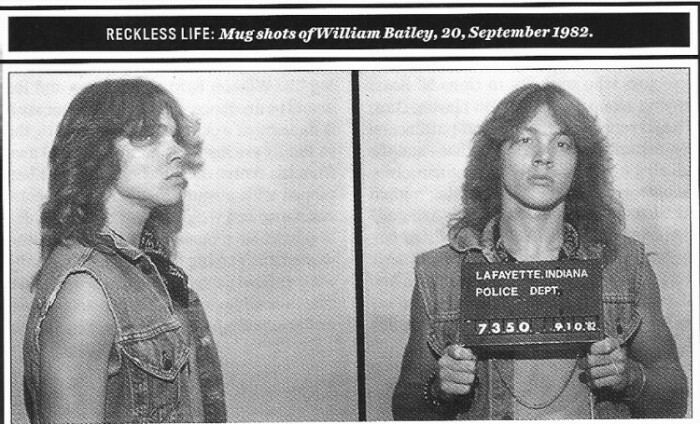 Certamente, quando eu voltei para lá naquela noite, ela tinha um folder completo: Relatórios de prisão, procurações, depoimentos juramentados, e mais dois outros tesouros: As primeiras fotografias de perfil para ficha policial de Axl, as quais ninguém tinha visto antes. O negativo de uma delas ainda não havia sido revelado. O policial o tinha enviado a um estúdio de revelação (Fotomat) para mim. Eu sentei lá fora, no meu carro alugado, refletindo sobre a minha sorte. As fotografias o retratavam entre os dezoito e vinte anos. Elas eram obras primas do tipo mais triste e acabado. A revista GQ acabou publicando a última foto, em que ele está um pouco mais velho e parece uma Farrah Fawcett exausta numa jaqueta jeans. Você pode encontrá-la com facilidade na Internet agora. Ela tem sua origem em uma briga no quintal de alguém – uma mulher gritou para Dana e Axl por terem perturbado o seu filho. Axl tinha uma tala em seu braço, que foi usada para atingi-la. Ele foi preso no estacionamento de uma sorveteria do bairro (Frozen Custard, soletrado “Custored” no relatório policial).”