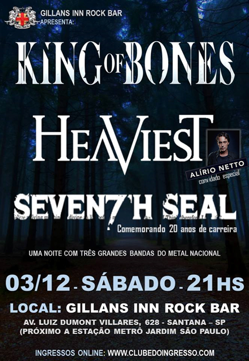 A banda Heaviest tem orgulho em confirmar a participação especial do vocalista Alirio Netto (Age of Artemis) no show especial de fim de ano ao lado dos grupos King of Bones e Seventh Seal no Gillan’s Inn English Rock Bar, em São Paulo, dia 3 de dezembro (sábado), à partir das 21hs. Os ingressos custam 25 reais e estão à venda no site do Clube do Ingresso (www.clubedoingresso.com).