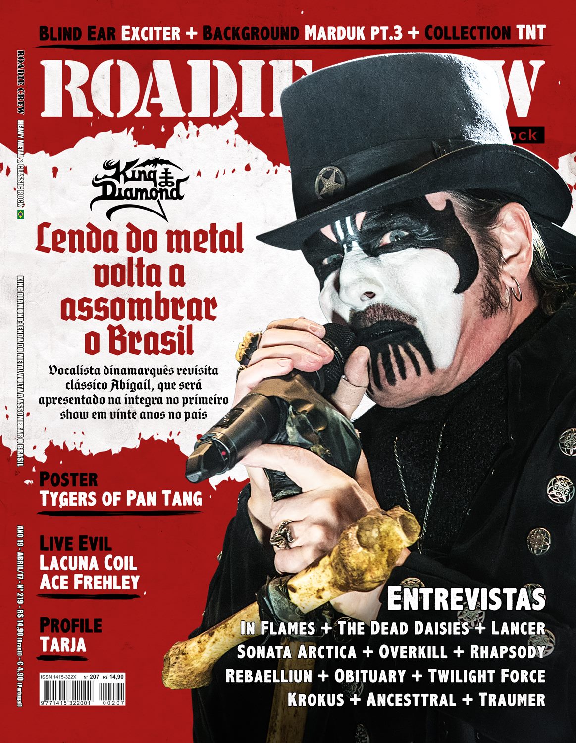 A edição #219 (abril, 2017) da revista Roadie Crew, que estará nas bancas de todo o Brasil até o dia 10 de abril, traz em sua matéria de capa King Diamond. O vocalista dinamarquês falou sobre os 30 anos de "Abigail" e sobre a turnê que passará pelo Brasil, além de detalhes do próximo disco de estúdio e o acordo que fez com o diabo por um pouco mais de vida e voz. "Nós nunca soamos tão bem ao vivo e também nunca tivemos uma presença de palco tão boa. Essa é a hora certa para nos ver", comentou.