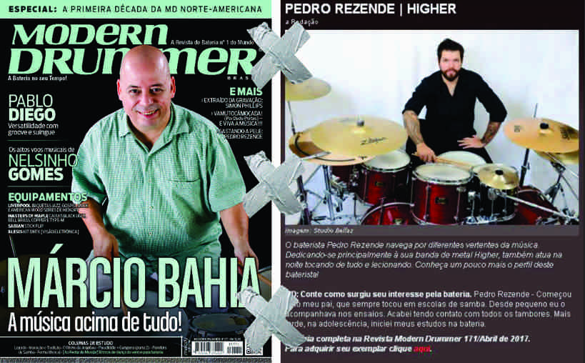Interessados em adquirir a Edição 171 (Abril 2017) da Modern Drummer que traz Márcio Bahia como matéria de capa, podem acessar o site da revista: http://moderndrummer.com.br