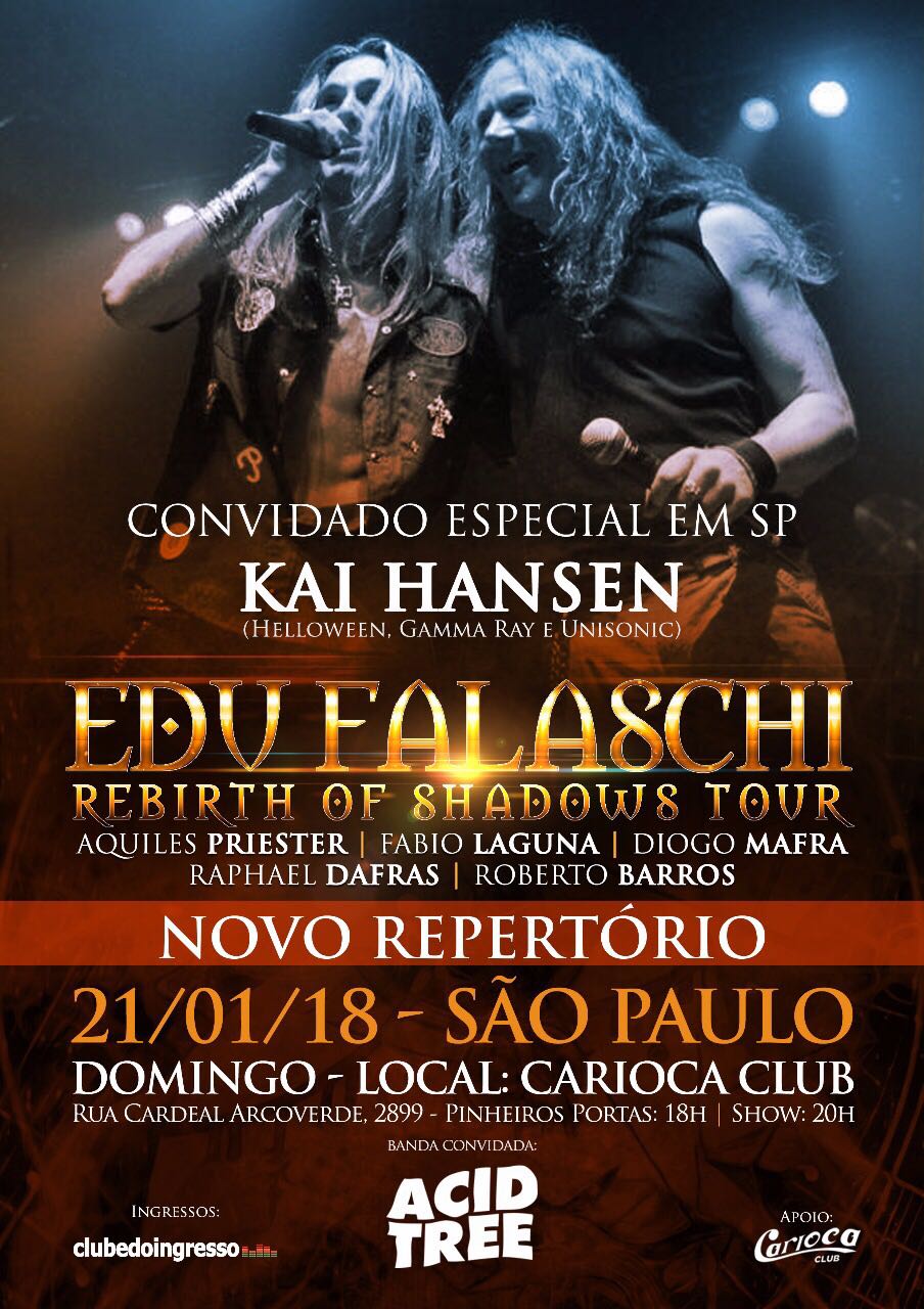 Após o vocalista Edu Falaschi anunciar a participação especial do vocalista e guitarrista do Helloween e Gamma Ray, Kai Hansen, o músico alemão enviou um vídeo especial para os fãs convidando a todos para o show histórico da “Rebirth of Shadows Tour” de São Paulo, no Carioca Club, que acontece dia 21 de janeiro de 2018. Esta será a última apresentação da turnê e Kai Hansen realizará dueto com Edu Falaschi na música “Temple of Hate”, entre outras surpresas, voltando no tempo para reviver aquela época mágica.
