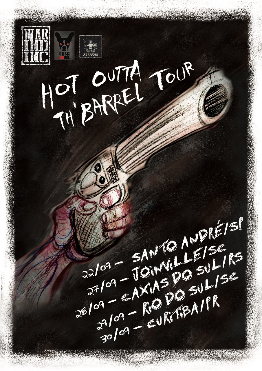 Na sequência, o Sul do Brasil é o destino da War Industries Inc. Serão quatro shows a partir do dia 27 de setembro, num giro que começa em Joinville (Santa Catarina), segue para Caixas do Sul (Rio Grande do Sul) no dia 28/9, Rio do Sul (SC) no dia 29/9 e termina em Curitiba (PR), no dia 30/9.