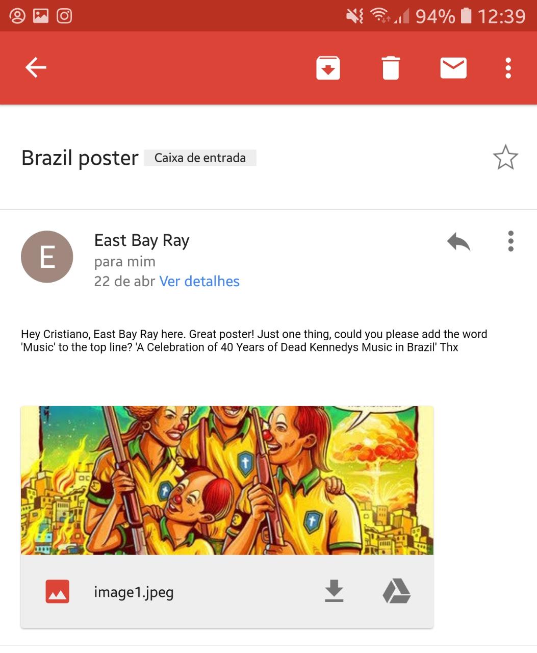 1) O conteúdo da arte foi aprovado por East Bay Ray diretamente ao desenhista, Cristiano Suarez. Abaixo o print do e-mail que poderíamos ter soltado semana passada, mas que seguramos na tentativa de contornar o problema.