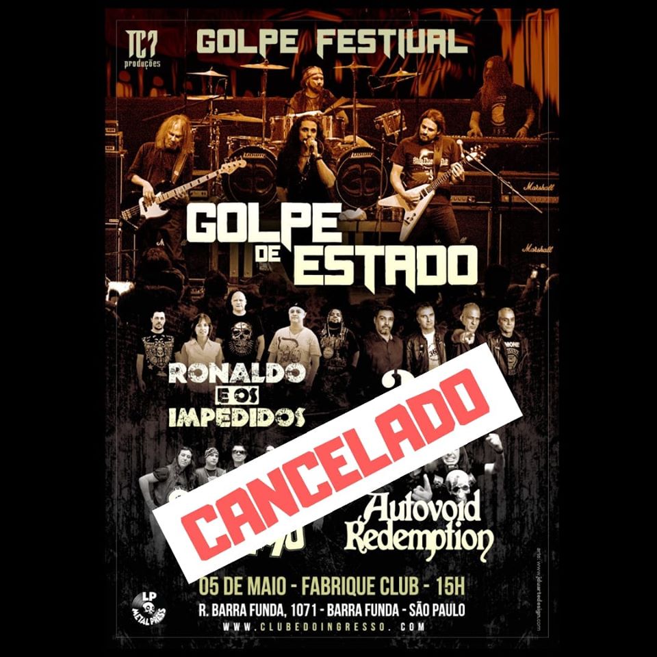 Por motivos de força maior o Golpe Fest que aconteceria neste domingo (05/05), no Fabrique Club, foi cancelado! A banda irá realizar o festival em breve, com novo formato.
