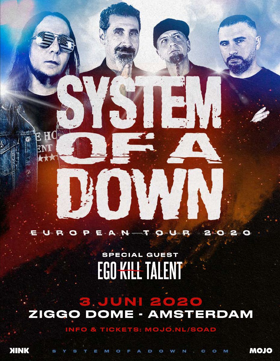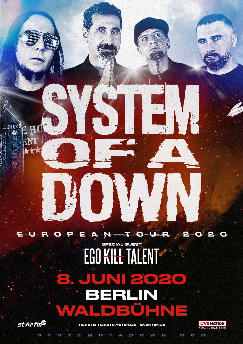 Próximos passos - 2020 será um ano bastante intenso para o Ego Kill Talent, atualmente um dos principais expoentes brasileiros de Rock no exterior. O grupo foi anunciado como special guest em quatro datas da nova turnê do System of A Down na Europa. Os shows acontecerão em Amsterdam (03/06 - Ziggo Dome), Berlim (08/06 - Waldbühne), Praga (16/06 - O2 Arena) e Budapeste (17/06 - Budapeste Arena).