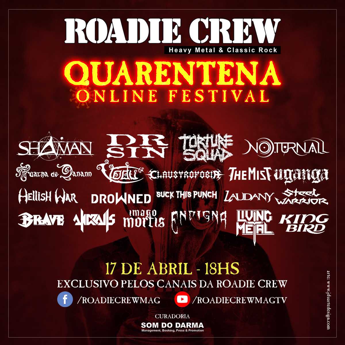 A revista Roadie Crew, em parceria com a produtora Som do Darma, apresentam nesta sexta-feira, dia 17 de Abril, às 18h, a primeira edição do festival online "Roadie Crew - Quarentena Online Festival".